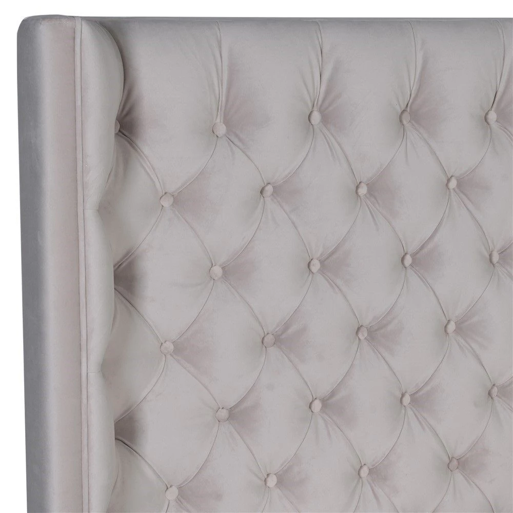 Create the bedroom of your dreams with this french-style velvet bed. This piece is upholstered in sumptuous grey velvet with deep buttoning details, all of which come together for a truly inviting and luxurious finish.
