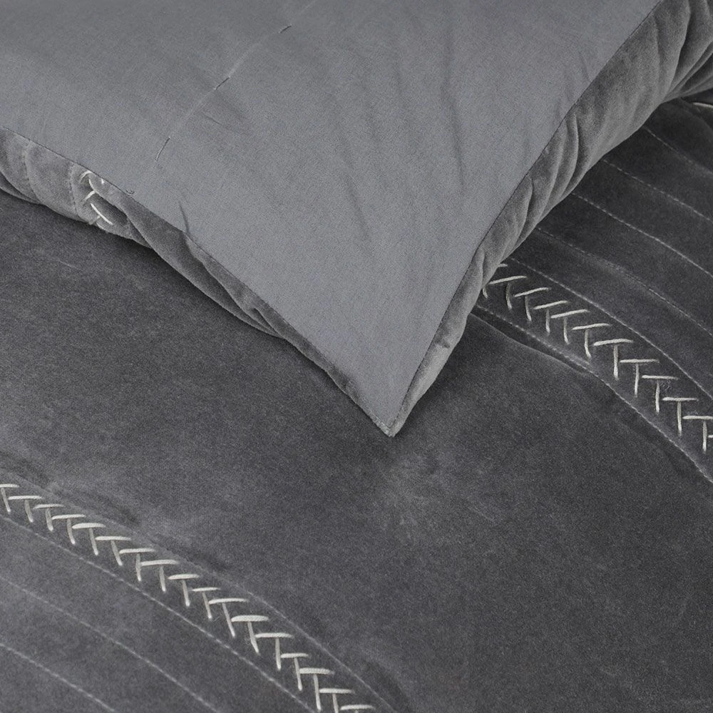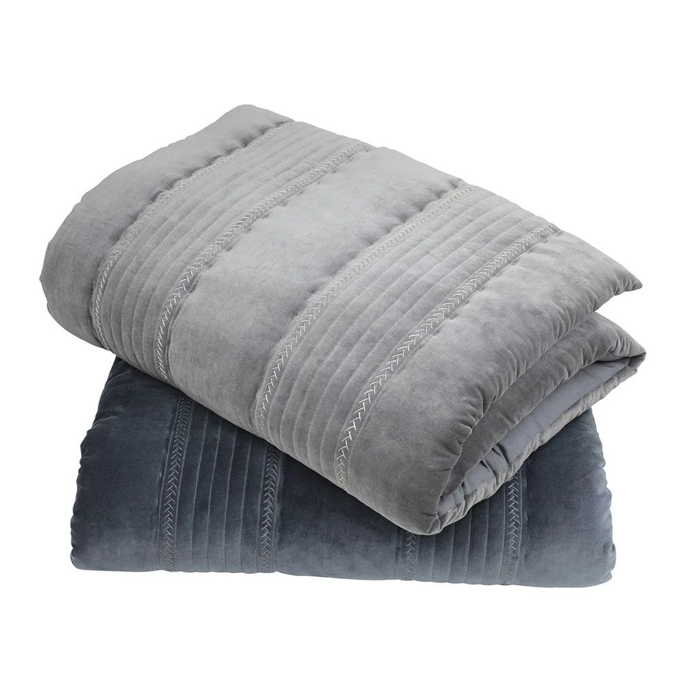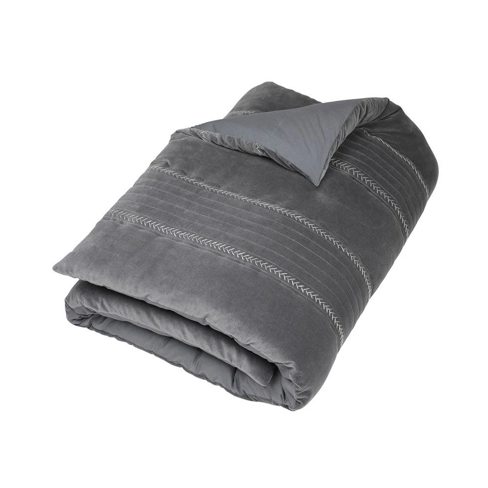 Minimalistic but luxurious, this stunning, grey velvet bedspread will give your living space an instantly cosy and chic look and feel. It features gorgeous handstitched details and will complement any bedroom theme.