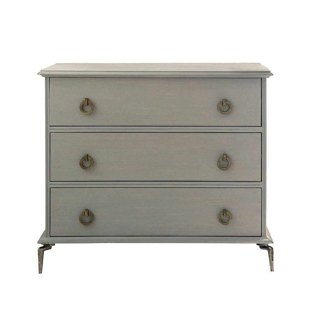 Entirely crafted by hand, the classic curves of the Gabrielle Chest of Drawers are enhanced by an artisanal gray patina and its luminous brass touches. Bringing a bright and refined touch to your space, this is the perfect finishing piece for any style of interiors.