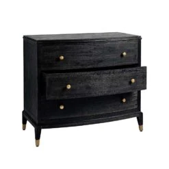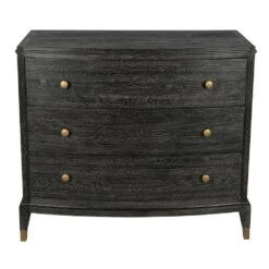 Add a touch of chic sophistication to your bedroom with the stylish Ines chest of drawers. This lovely design comes in a rich, expresso shade and the contrasting brass-like accents add the right amount of timeless elegance for a contemporary luxe home.