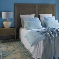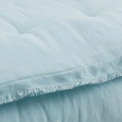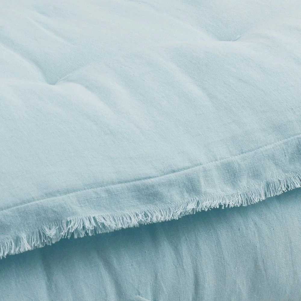 The dreamy, pastel blue Lea Quilt is a stylish piece for giving your sleep sanctuary a finished look and feel. Featuring a luxurious 100% linen cover with subtle pull-in, handstitched details and fringing, this soft and cosy design will add calming colour and comfort to your space.