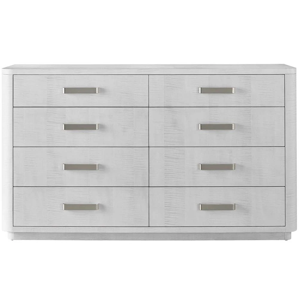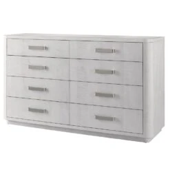 Finished in an opulent white sycamore hue, the Cabo Chest of Drawers bring luxury to bedroom dwellings, complete with six spacious drawers and abundant silver handles.