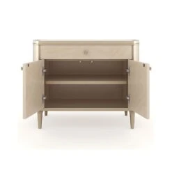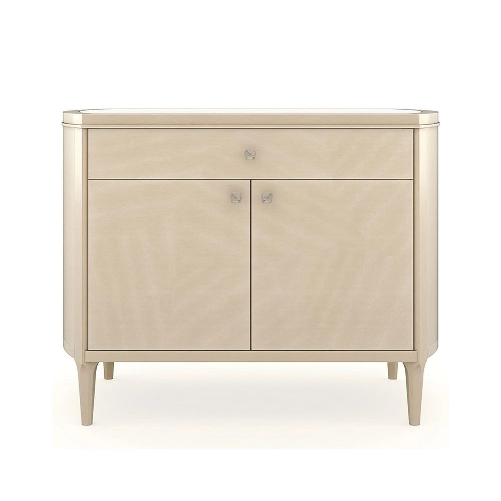 Enrich your decor with the opulent charm of this bedside table. With a creamy-coloured finish dazzling handles and a radiant stone surface, this piece exudes a clean, timeless and tasteful design that will elevate your bedroom. The drawer and cupboard also offer ample bedroom storage.