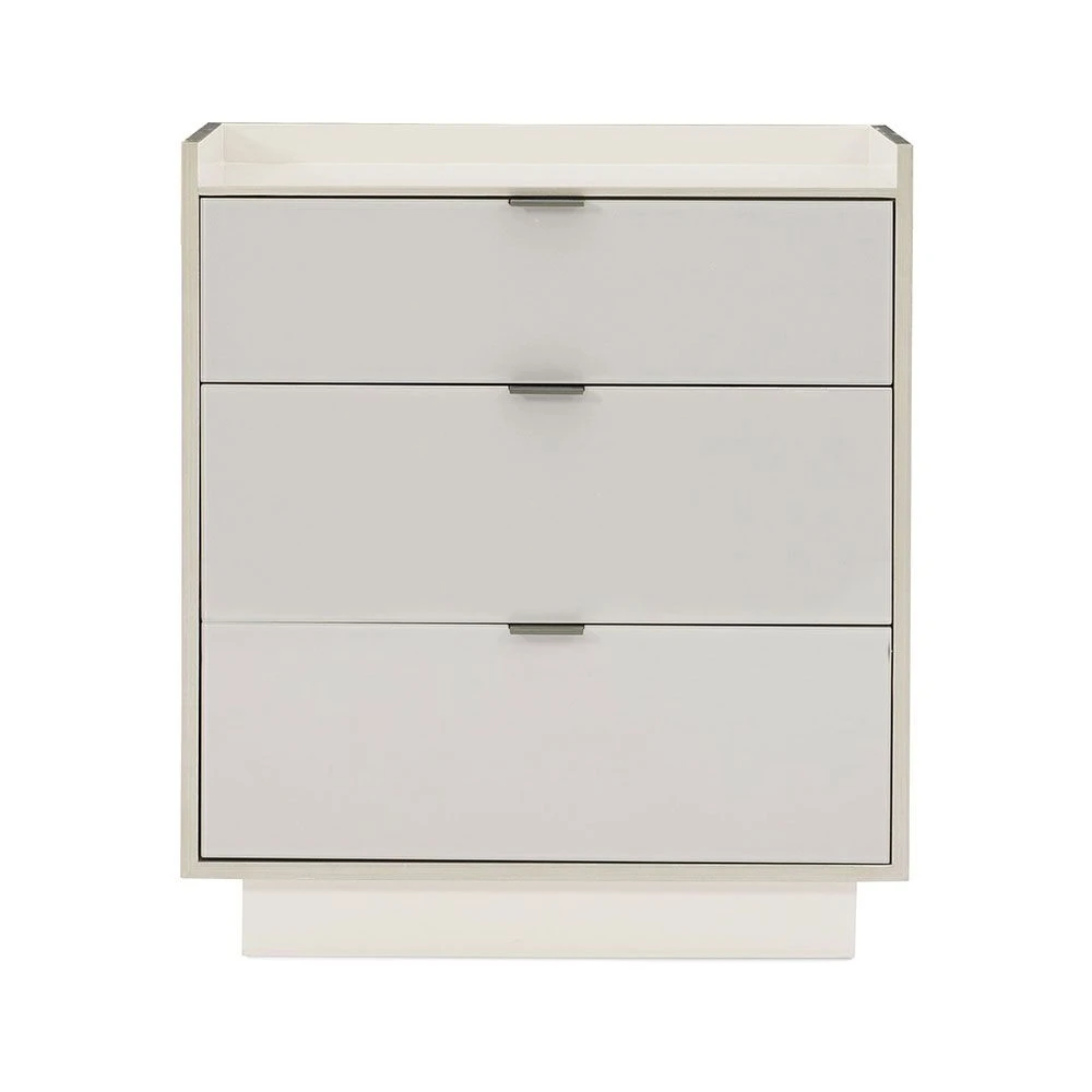 Reinvent your bedroom interior with the addition of the exquisitely elegant, Expressions Bedside Table by Caracole. Boasting clean lines and understated refinement, this beautiful bedside table features three glass drawer fronts back-painted in a gorgeous grey finish with tab pulls. Place one of these enchanting bedside tables either side of a signature bed for a harmonious display.