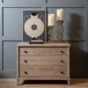 Spruce up your hall with this timelessly elegant 3-drawer chest. This piece exudes a tasteful beauty, with a shape that combines the best of classic curves and a modern wooden inlay design. The surface is a plain, cream colour which contrasts with the wood finish for an ultimately sophisticated appeal.