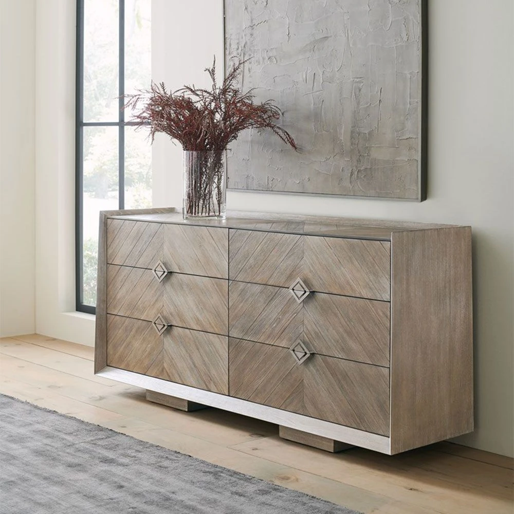 Integrate some striking, scandi-inspired natural texture into your decor with this aptly named Naturally Dresser. With its mesmerising parquet design and diamond-shaped handles, this piece exudes an elevated, modern appeal that will suit any contemporary interior looking for a style-refresh.