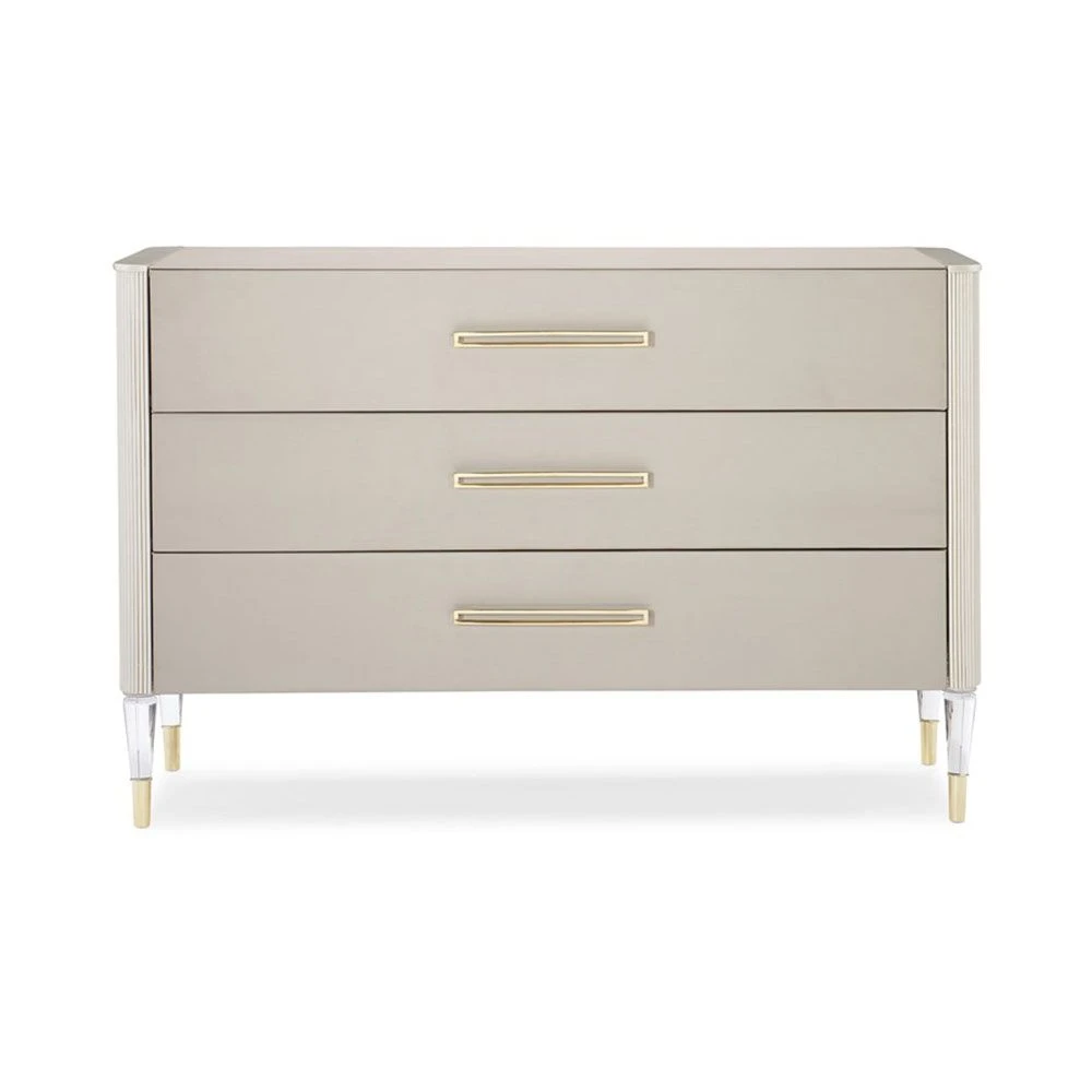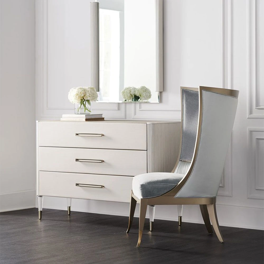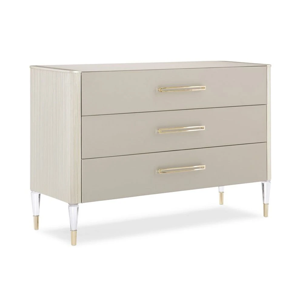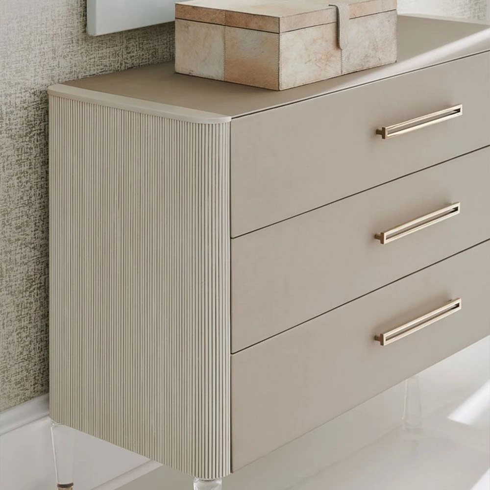 Modern, fresh and fabulous, this opulent chest of drawers combines simplicity with unadulterated sophistication. The elegant finish of this piece integrates fluted details, clean-cut lines and decadent gold handles and feet – all of which come together to complement the striking style of this piece.