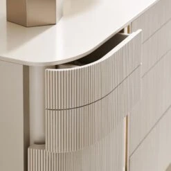 Transform your interior with this effortlessly elegant dresser, courtesy of Caracole. This stunning piece is perfectly suited for any contemporary interior, with its sleek touch-latch drawers and gold details extending from the top of the dresser to the feet. The gentle fluting of the drawers also gives this piece a sophisticated appeal, making it an exquisite addition to your home furnishings.