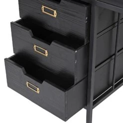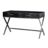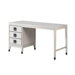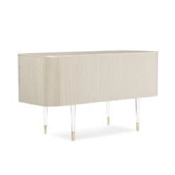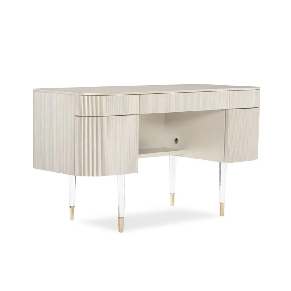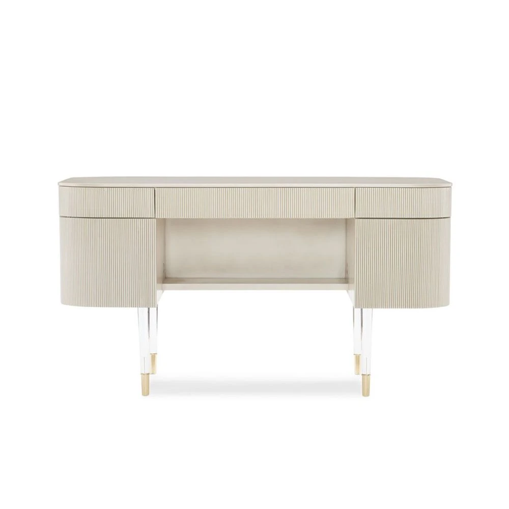 Doubling up as a desk or dressing table, this luxurious table exudes subdued contemporary glamour. The off-white finish of the body of the piece is complemented by the acrylic finish legs and gold detailing, which come together to create a sophisticated feel. There are three frieze drawers and two cupboards for plenty of storage for office essentials.