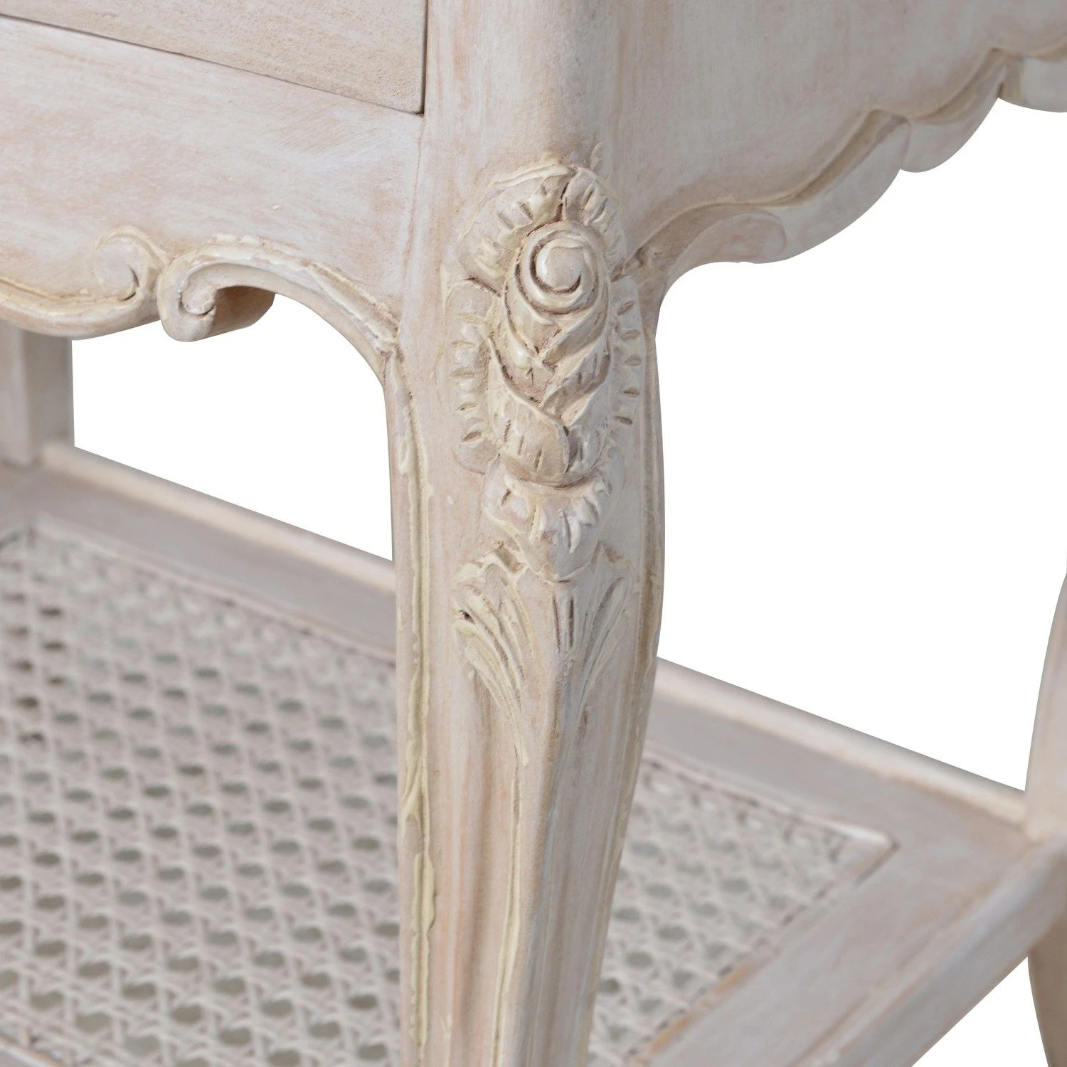 This gorgeous shabby chic bedside table is sure to bring some French country charm into your bedroom. With two handy drawers and a shelve at the bottom, this is not only a beautiful piece but also extremely useful, with ample storage space for all those little bits which may be floating around your bedroom. Further, the top provides a beautiful space for you to place a stunning side lamp and to treasure those special memories, why not pop a loved photograph into one of our Wilton distressed…