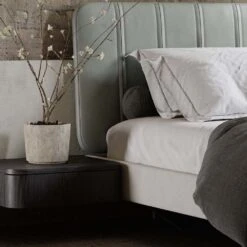 Pictured in Desna Polvere (Leather) with Arno 50 (Weave) & Black Ash (Wood)| Mattress and bedding not included
