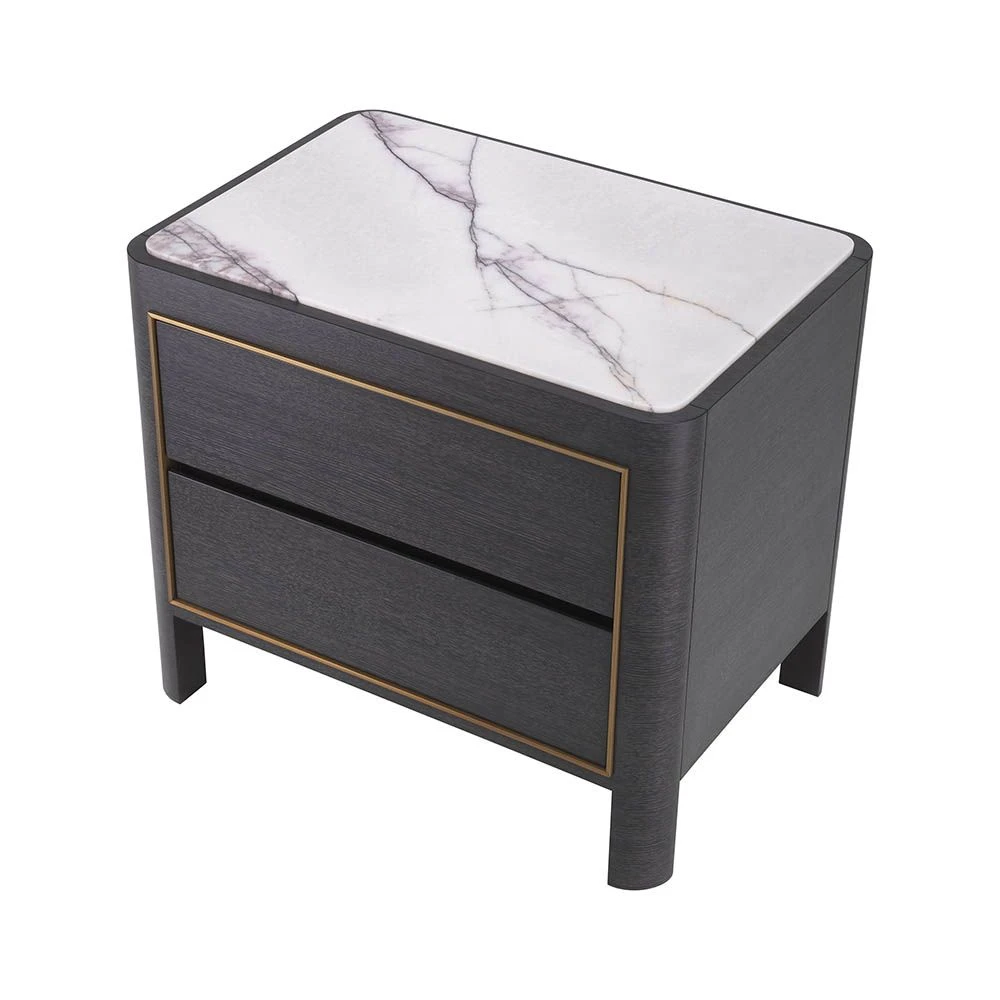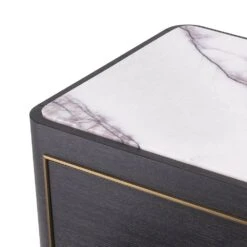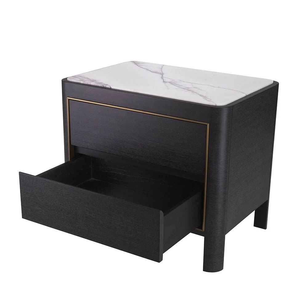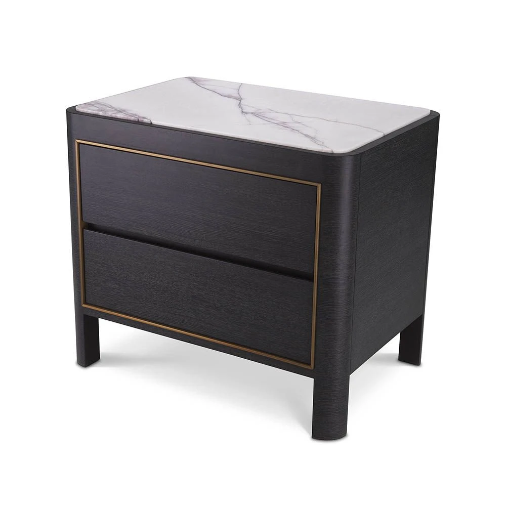 Elegant, sleek and elevated, this piece is the perfect bedside table for a contemporary, sophisticated interior style. The white marble top stands out beautifully against the rich mahogany finish which is enhanced further by an exquisite brass accent. Infuse your space with the divine design of the Corazon Bedside Table.