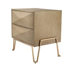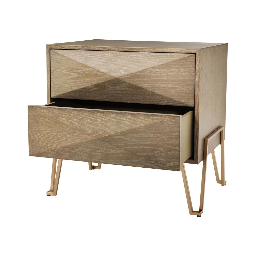 The gorgeous natural oak Highland Bedside Table by Eichholtz is a wonderful piece for adding a sense of modern luxe to any contemporary space. Elevated on stylish, brushed brass legs, this oak piece features two drawers and plenty of storage space.