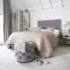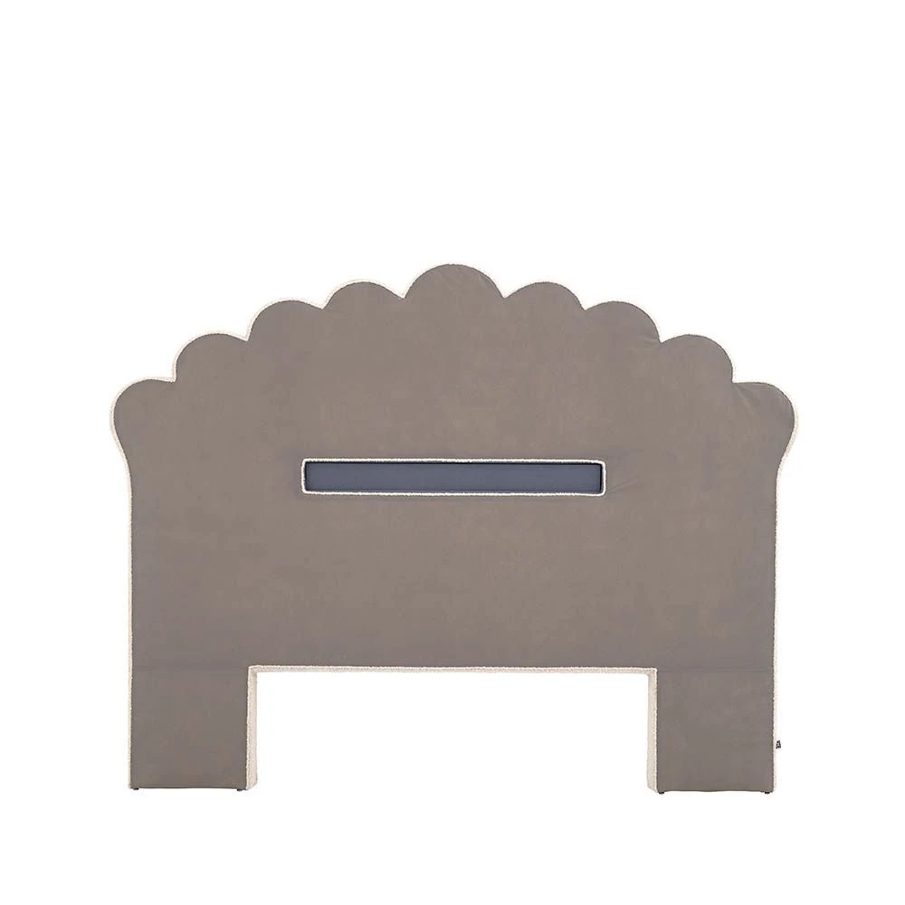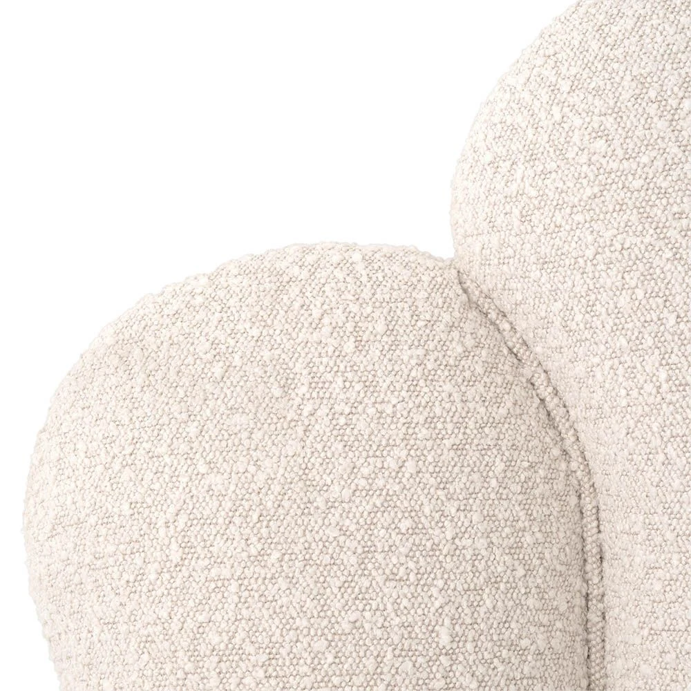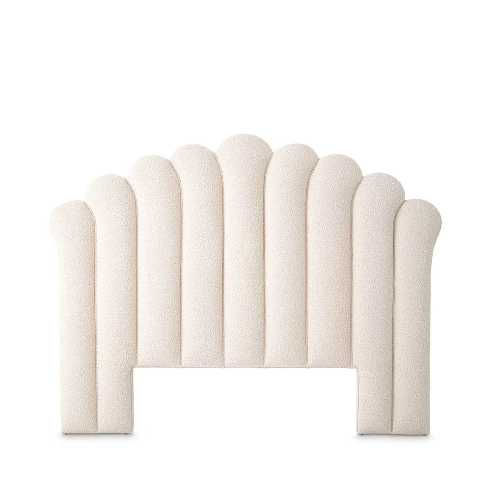 Grace your bedroom with the beauty of the elegant Eichholtz Trapezium Headboard. This dreamy headboard features a stylish scalloped design with a beautiful boucle cream upholstery that will look lovely in any bedroom. Let this sophisticated piece emanate refined luxury and elegance in your sleep sanctuary.