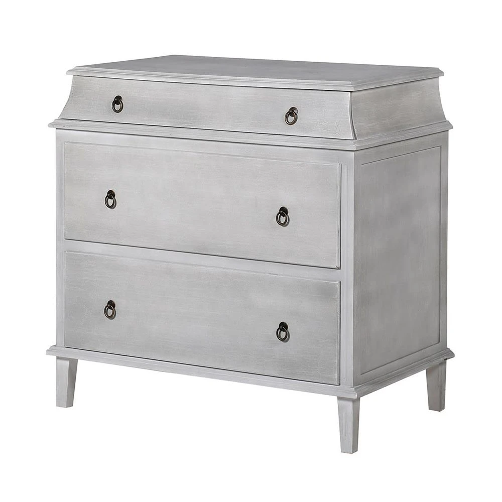 Introducing the lovely Elisa Chest Of Drawers, in a gorgeous, antique grey wood finish. Providing you with three drawers of storage, this wooden French-style chest makes a beautiful addition to any classic or contemporary home.