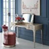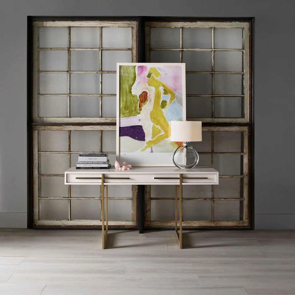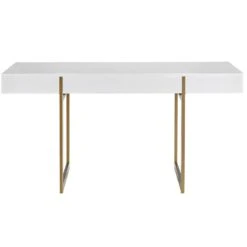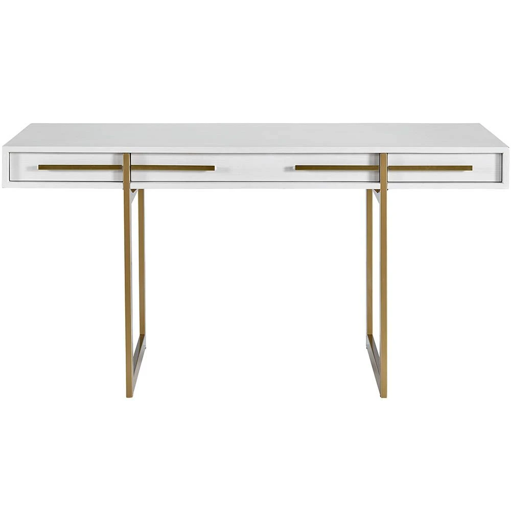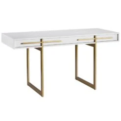 Exuding chic sophistication, the Ellsworth Desk marries a white-hued desktop with a refined golden frame, creating a uniquely modern statement piece.