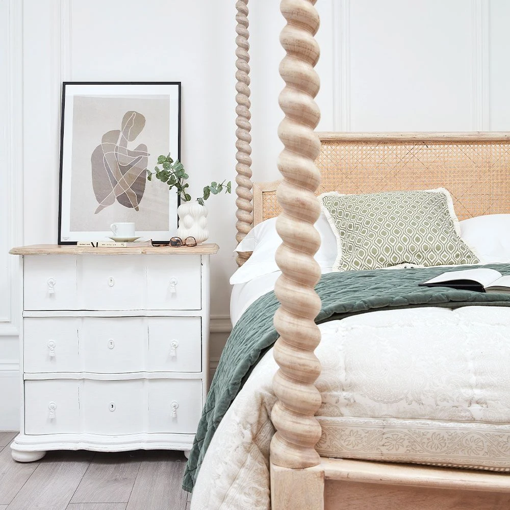Experience the best night’s sleep in this Scandinavian inspired Hamlin Superking. The attention to detail is what makes this item the perfect piece for any bedroom inspired by comfort, natural and luxurious décor. Exquisite twisted columns and a rattan headboard, this bed frame is the epitome of chic comfort.