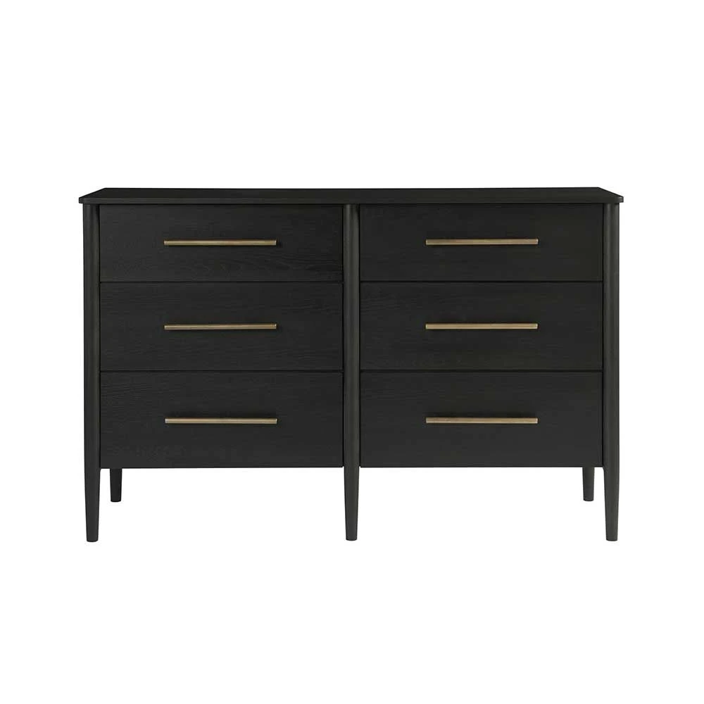 Store folded garments within the clean lines of the Langley Dresser, built with six drawers and punctuated by contemporary hardware.