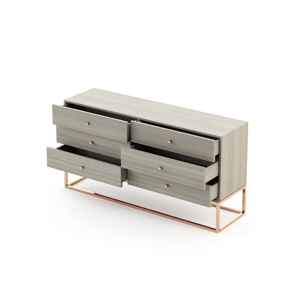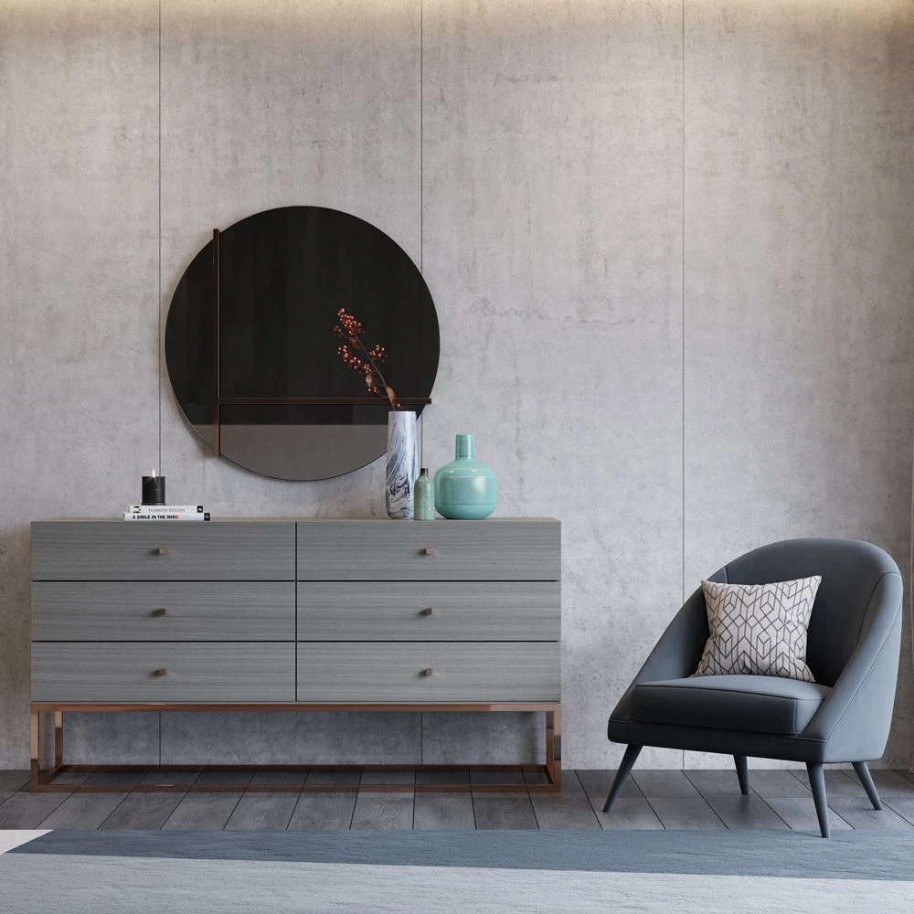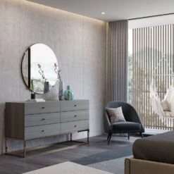 The luxurious Ester Chest of Drawers is the perfect storage solution for enhancing your modern luxe space. Perfect for even the most minimal bedroom, the aged oak and gold combination will complement all settings.
