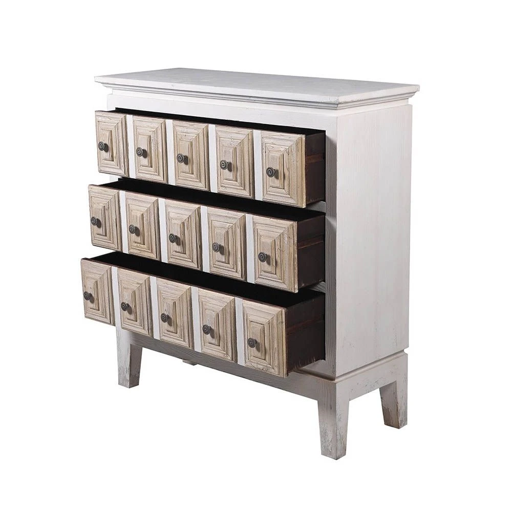 Infuse your space with a touch of rustic allure with this utterly lovely chest of drawers. The mix of natural wood blocks against the cream-white finish of the drawers gives this piece a harmonious feel that will refresh your space with a touch of farmhouse chic.