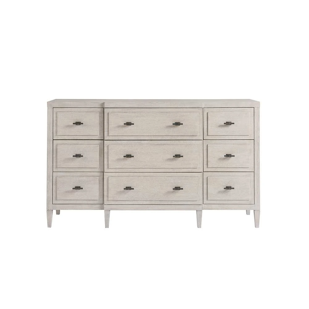 Boasting a crisp and welcoming Flannel finish, the Midtown Chest of Drawers is designed with 9 abundantly spacious drawers accented by matte black bar hardware.
