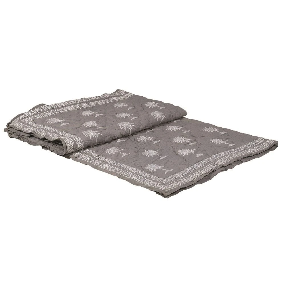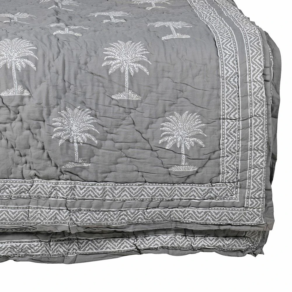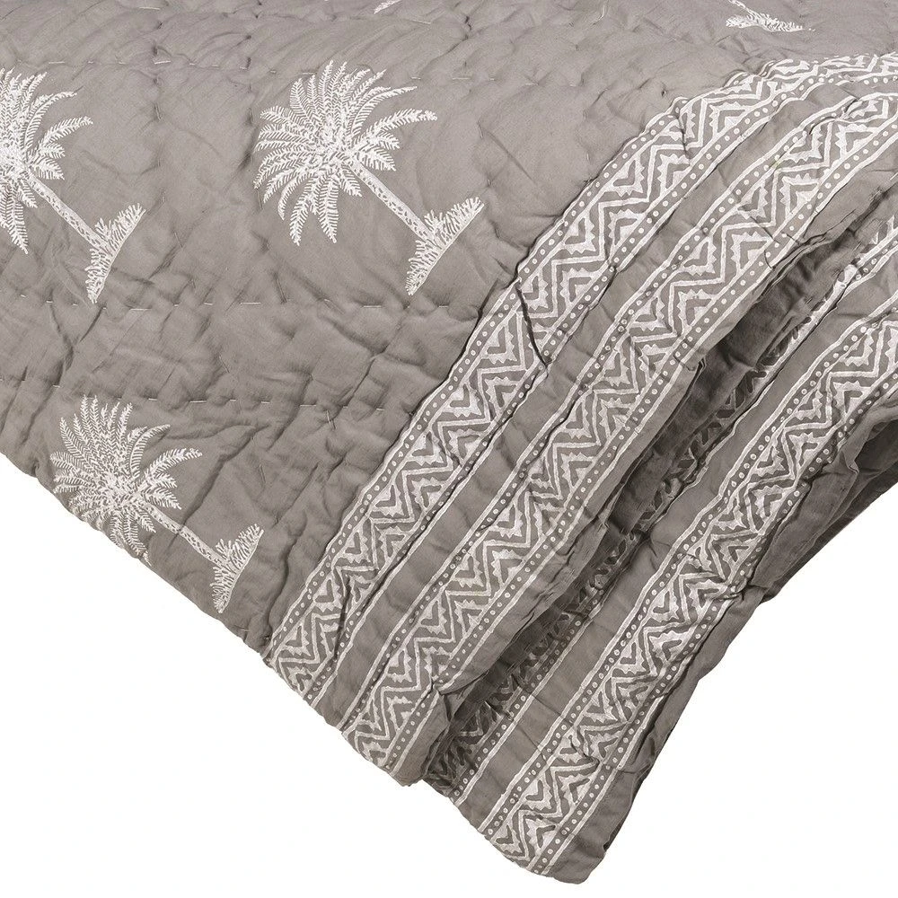 Indulge in comfort and style with the Porto Palm Bedspread. This piece has a versatile grey finish and is adorned with a tasteful palm tree print, embracing a sense of tropical allure. Wrap up and relax while making a statement in your home décor.