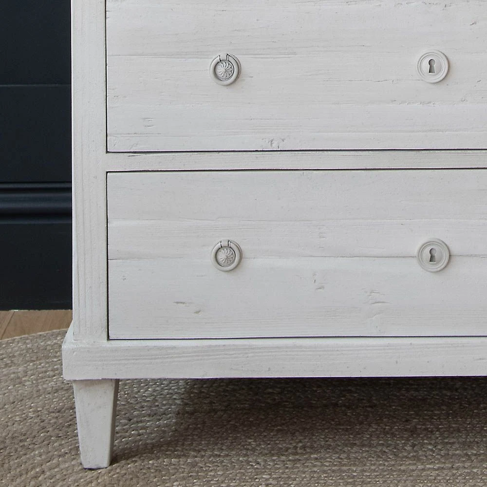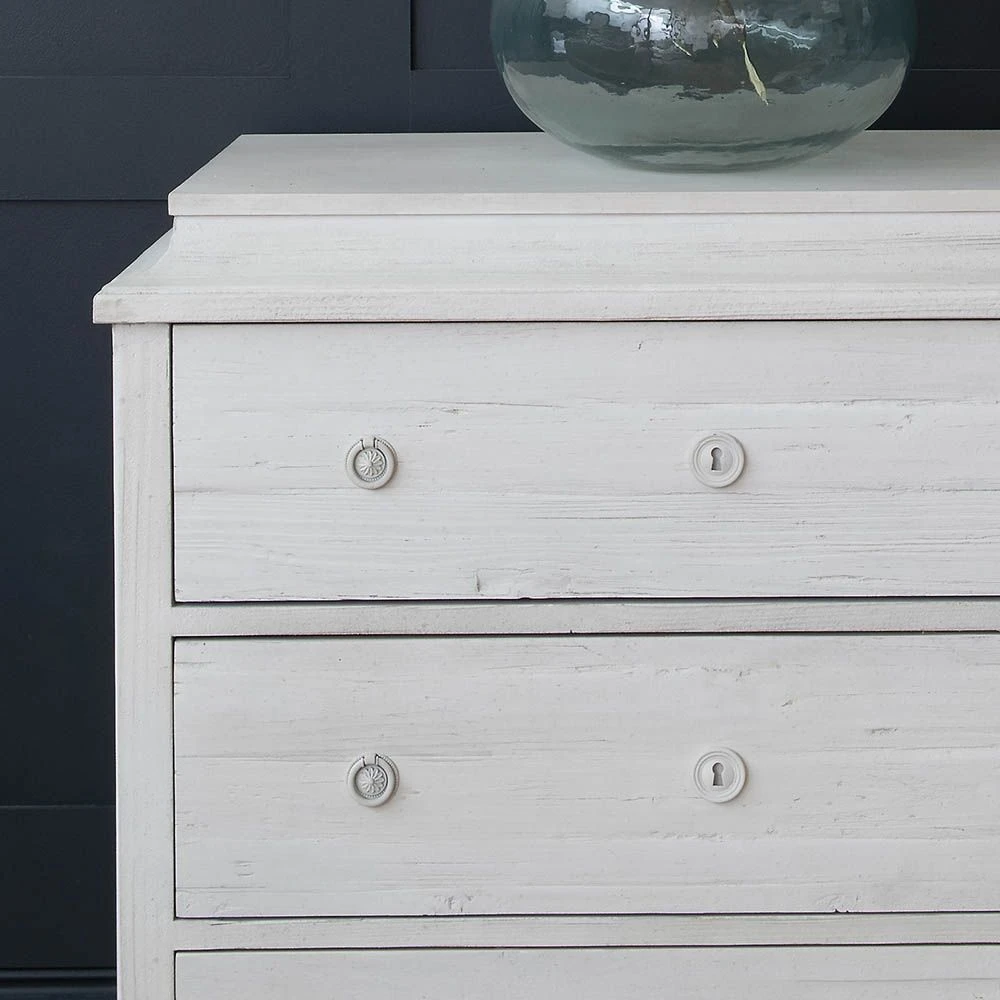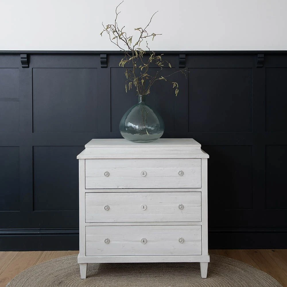 This charming white three-drawer chest offers both practicality and style, making it the perfect addition to any bedroom, hallway, or living space. Crafted from high-quality materials, it features a sleek and elegant design that adds a touch of sophistication to any room. The three spacious drawers provide ample storage space for clothes, linens, or other personal belongings, while the simple white finish complements a wide range of interior decor styles.