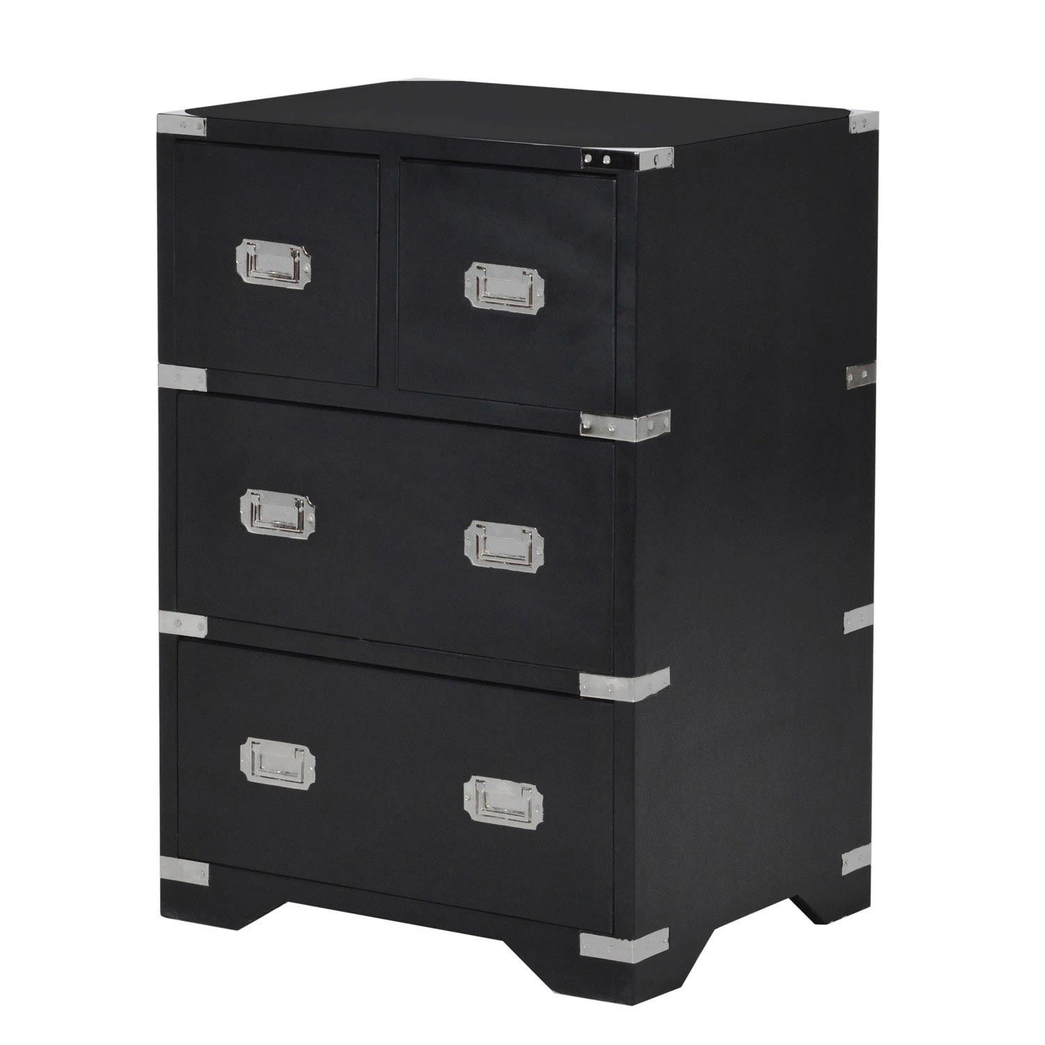 This stunning bedside would look wonderful in a variety of bedroom interiors. The meticulous attention paid to detail and contrasting monochrome colour scheme give this bedside a sophisticated air which will ooze class into your living space. Especially with two large and two smaller drawers, this bedside is both useful and stunning – a must have and goes beautifully with our range of Draper pieces.