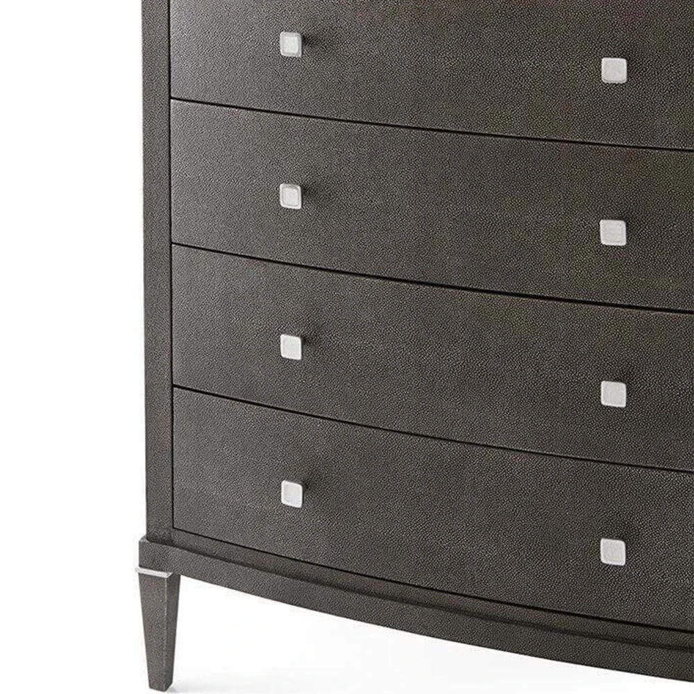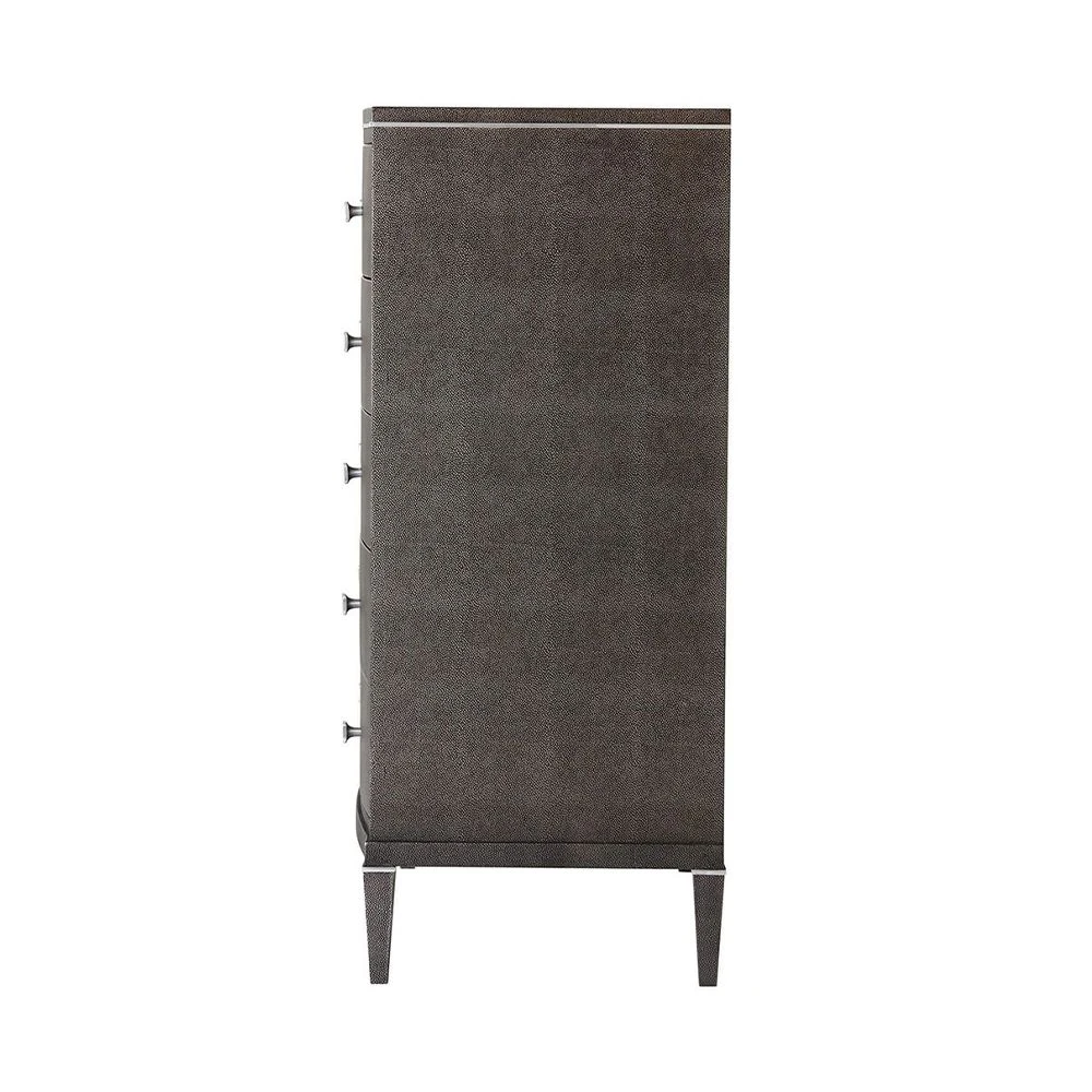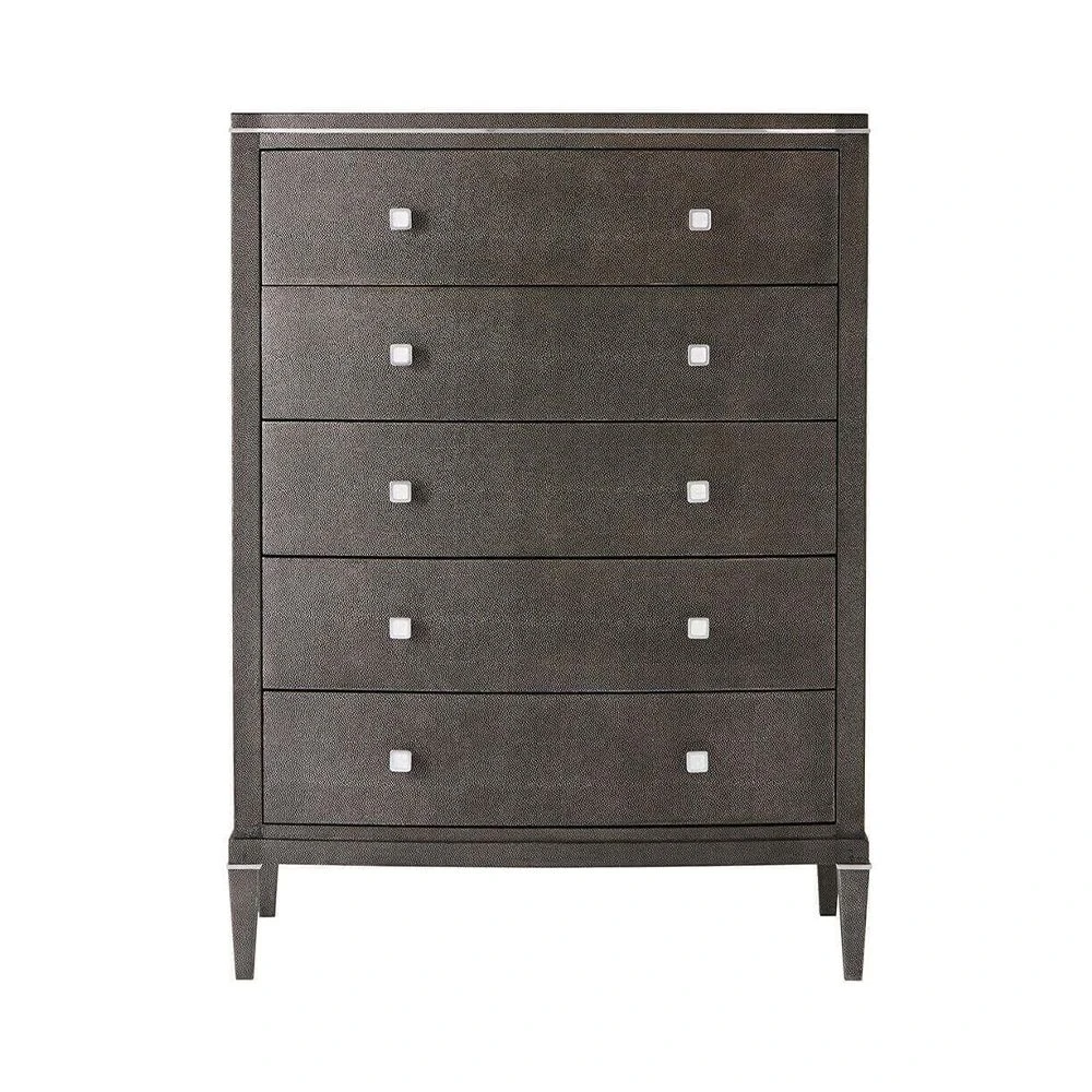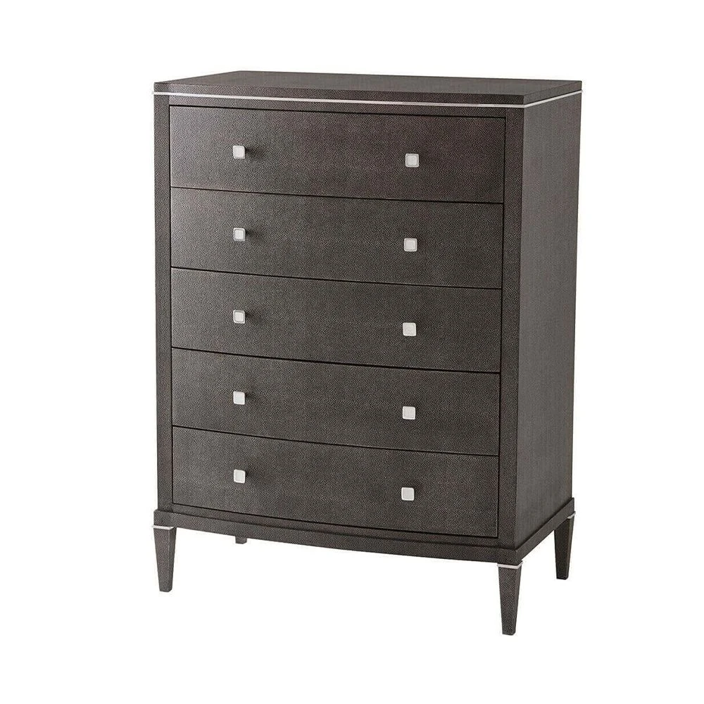 Incorporate timeless style and opulence into your bedroom interior with the handsome, Adeline Tall Chest Of Drawers. This statement chest emanates luxury with its dark composition and embossed leather design which will bring sophistication to any contemporary interior. Finished with elegant tapered legs and glamorous polished nickel adornments, if you love all things luxurious in life then this chic chest is the storage solution for you.