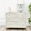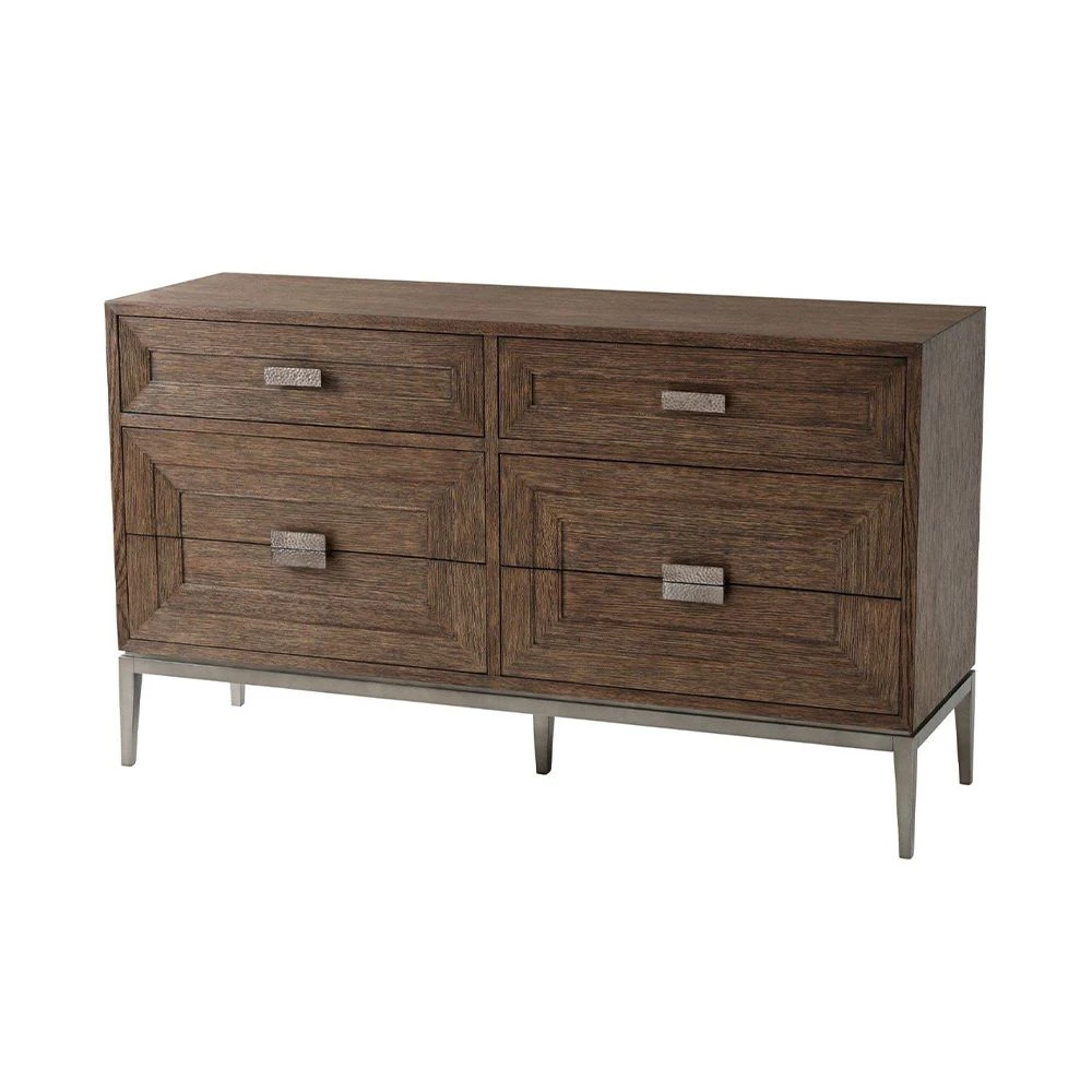 Furnish your bedroom or dressing room with this stunning, timeless Genevra Dresser in a rich Charteris finish. It features two frieze drawers with an inlaid pattern and hammered metal handler, and four similar drawers below, offering plenty of storage while also boasting a unique and sleek design. This dresser is raised on chic matte metal legs meaning it will make your space feel more open and stylish.