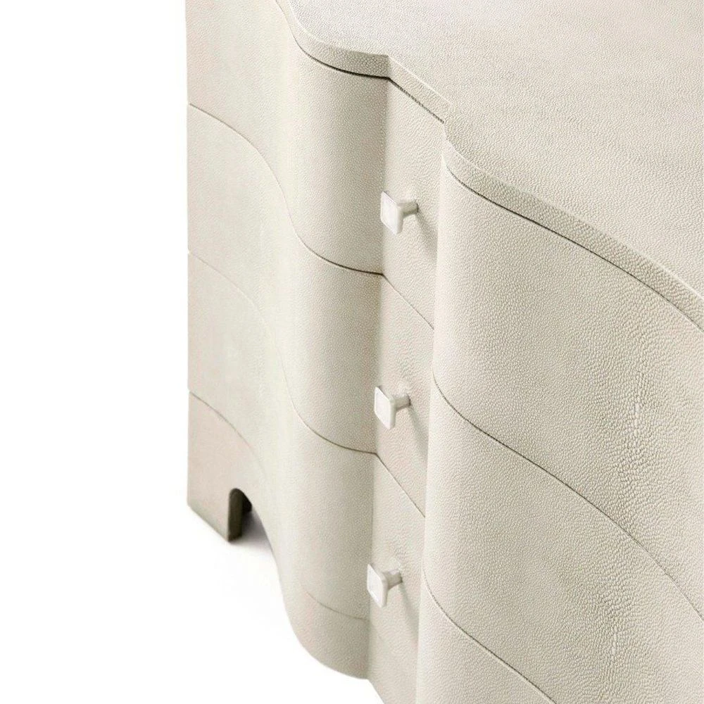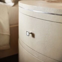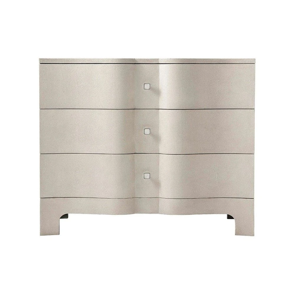 Indulge in the timeless beauty of the glamorous, Nolan Chest Of Drawers. This luxury chest of drawers showcases an elegant design consisting of a graceful, undulating structure which creates chic and contemporary curves. This stylish piece features a stunning, shagreen-embossed leather wrapping with three generously spacious drawers and irresistible, inlaid polished nickel handles. Its gorgeous, natural finish allows…