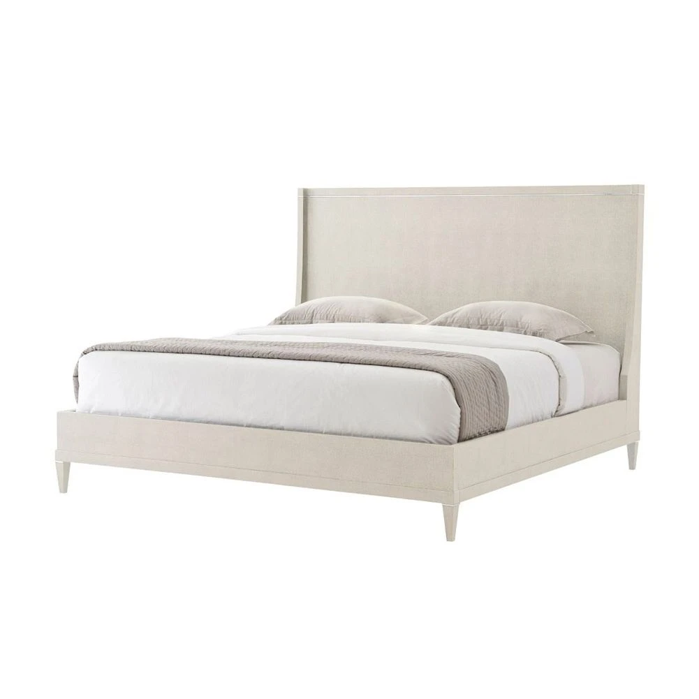 Transform your bedroom into a sophisticated sleep sanctuary with the stylish, Palmer Kingsize Bed. This beautiful bed exudes comfort and luxury with its contemporary design which boasts a gorgeous, natural finish and is wrapped in a stunning, shagreen embossed leather for added timeless elegance. Complete with down swept wings and glamorous, polished nickel moulded accents, this neutral bed will look effortlessly graceful while complementing any décor and colour scheme.
