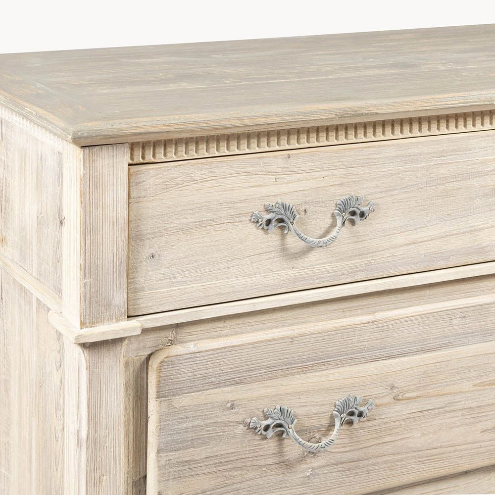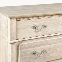 Transform your home with some traditional luxury with this captivating chest of drawers. Featuring an elegant, pale natural wood finish this piece oozes sophistication and earthly charm. The ornate details of the handles also elevate the look and feel of this piece, making it a striking addition to any homely space.